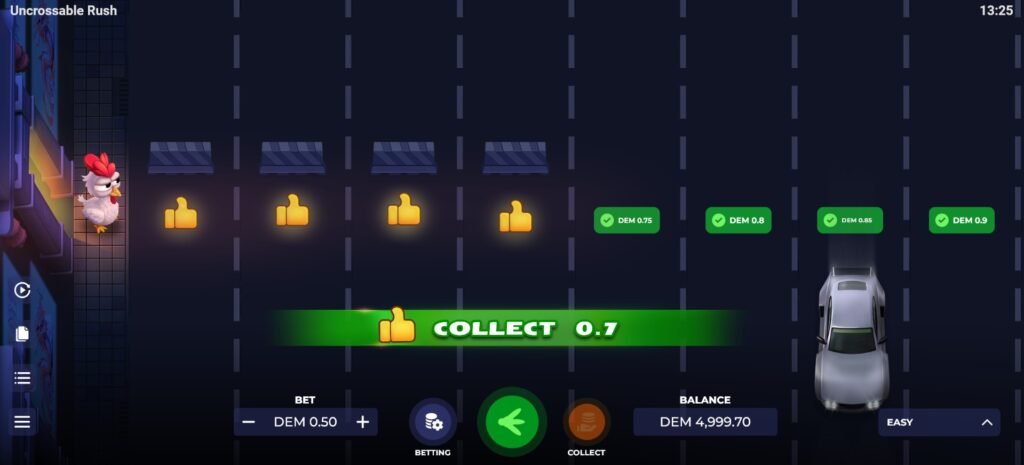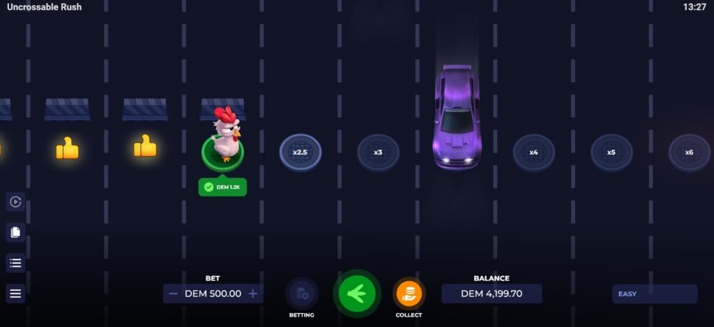 Uncrossable Rush transporte l’univers décalé des jeux de course d’animaux dans un format pensé pour le casino en ligne. Chaque partie se déroule sur une autoroute de 24 voies où la rapidité et le volume du trafic varient selon la difficulté choisie.